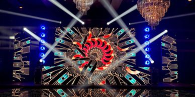 | Audio 0-400 px | Iluminación 12 Beam | 5 horas DJ - Animador | Humo ambiental | Pantalla LED 4x2.50, 2 pantallas LED de 3x1.50 - booth de LED 2.50x1 | 3 arcos